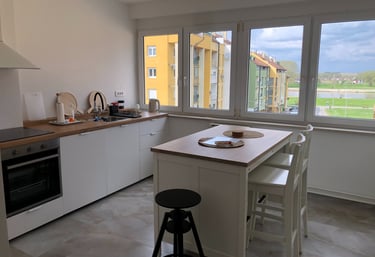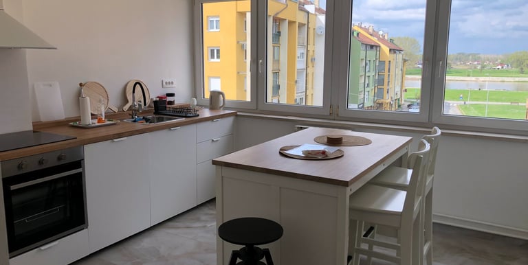 Stan za najam u centru Osijeka s pogledom na rijeku Dravu, savršeno opremljen za poslovne subjekte i poslovne fizičke osobe. Izdajemo račun!