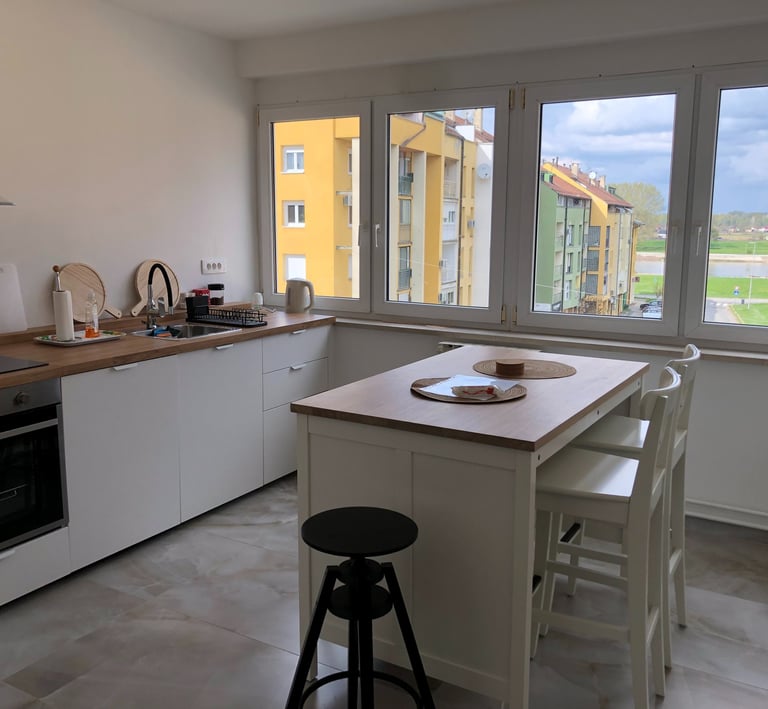 Uživajte u prekrasnom pogledu na rijeku Dravu iz svih prostorija stana.