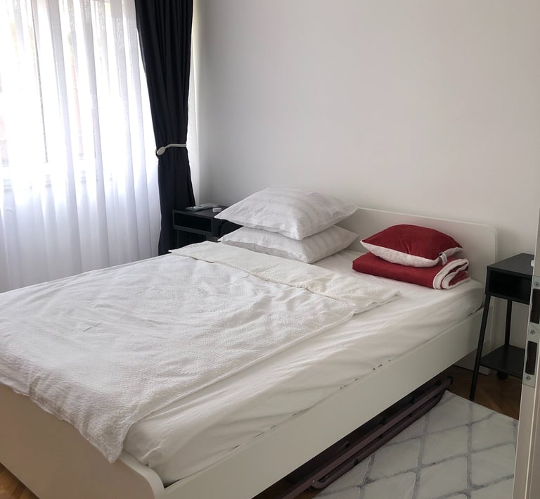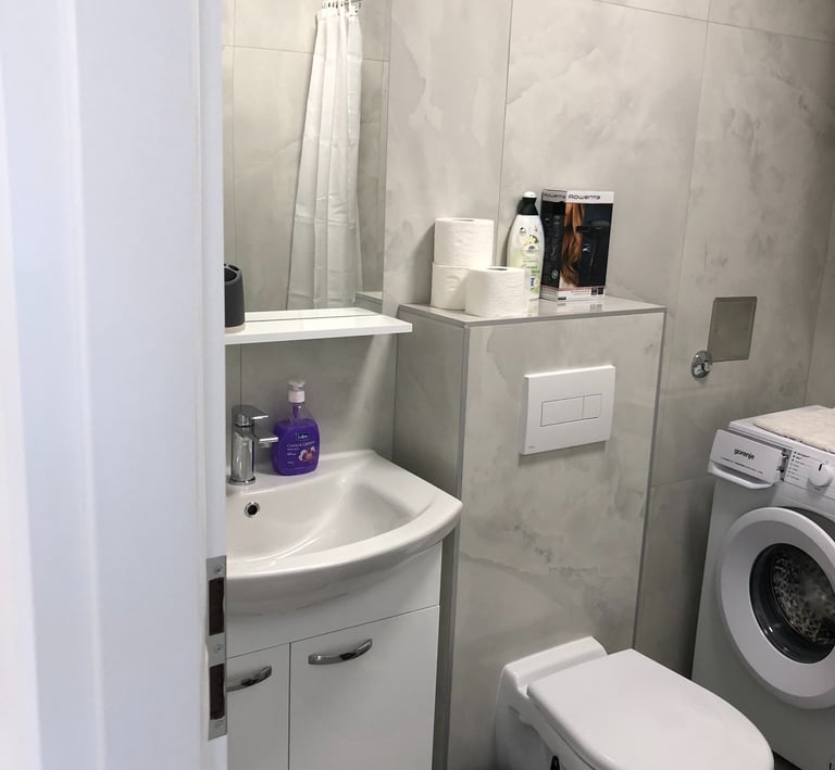 Stan je potpuno opremljen novim uređajima, aparatima, namještajem i kuhinjom za vašu udobnost. Radni stol, udobna stolica, stolna lampa i priključci za napajanje mobilnih i ostalih uređaja.